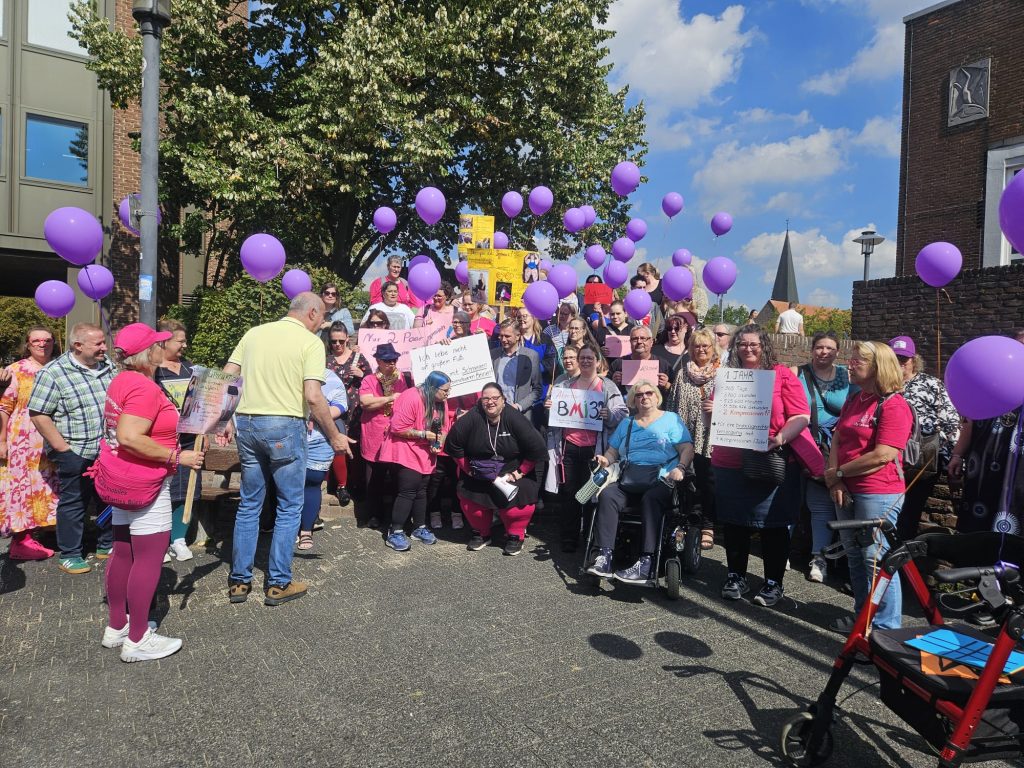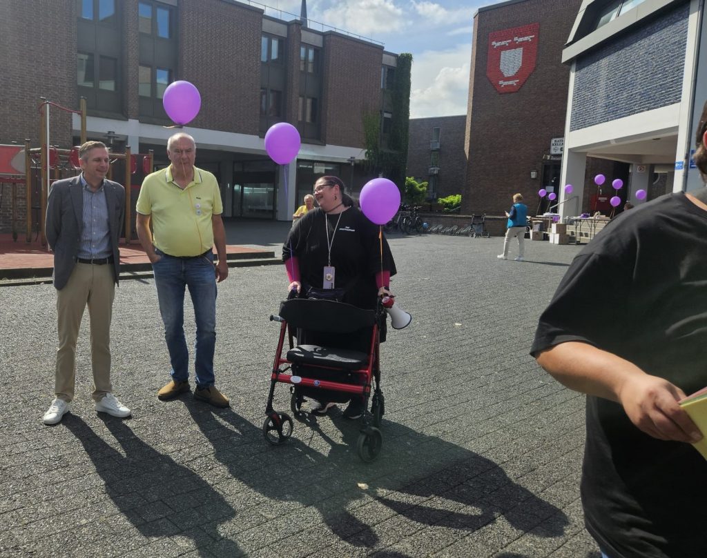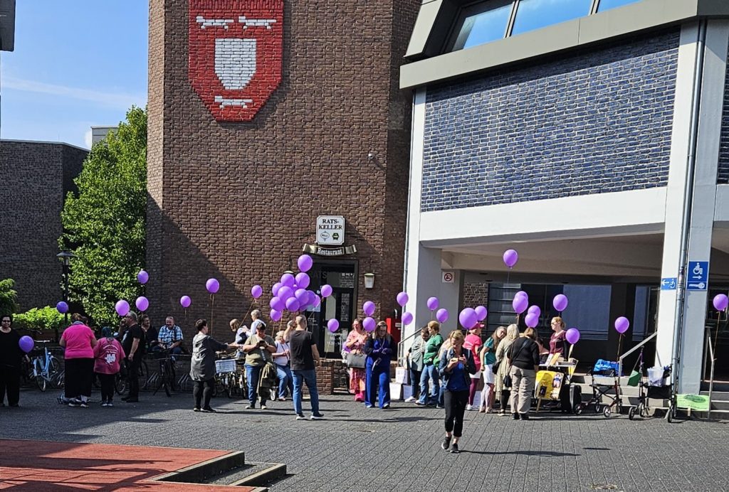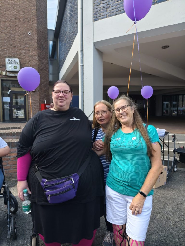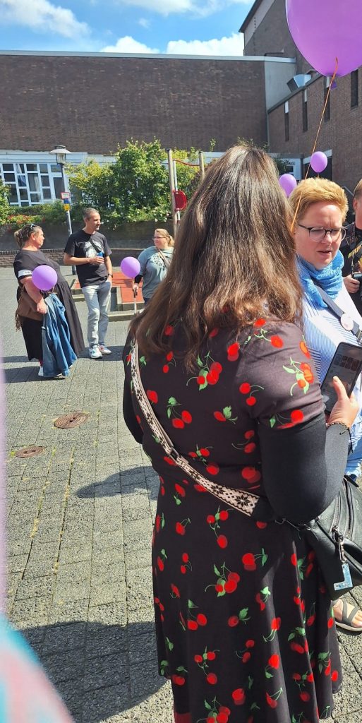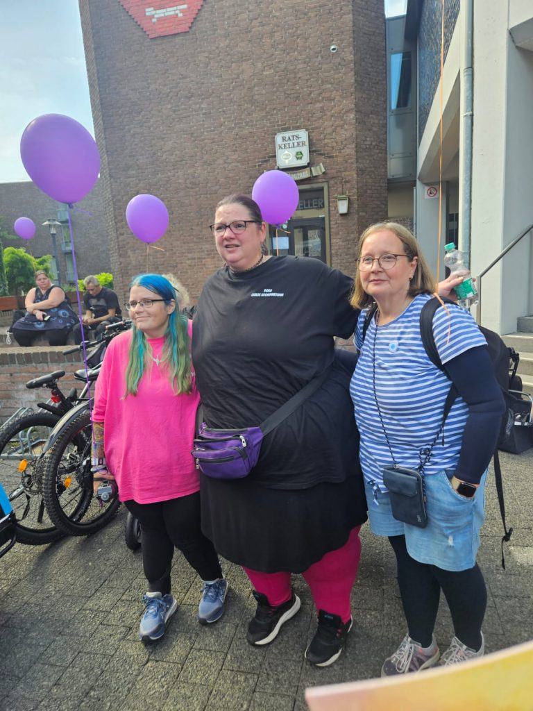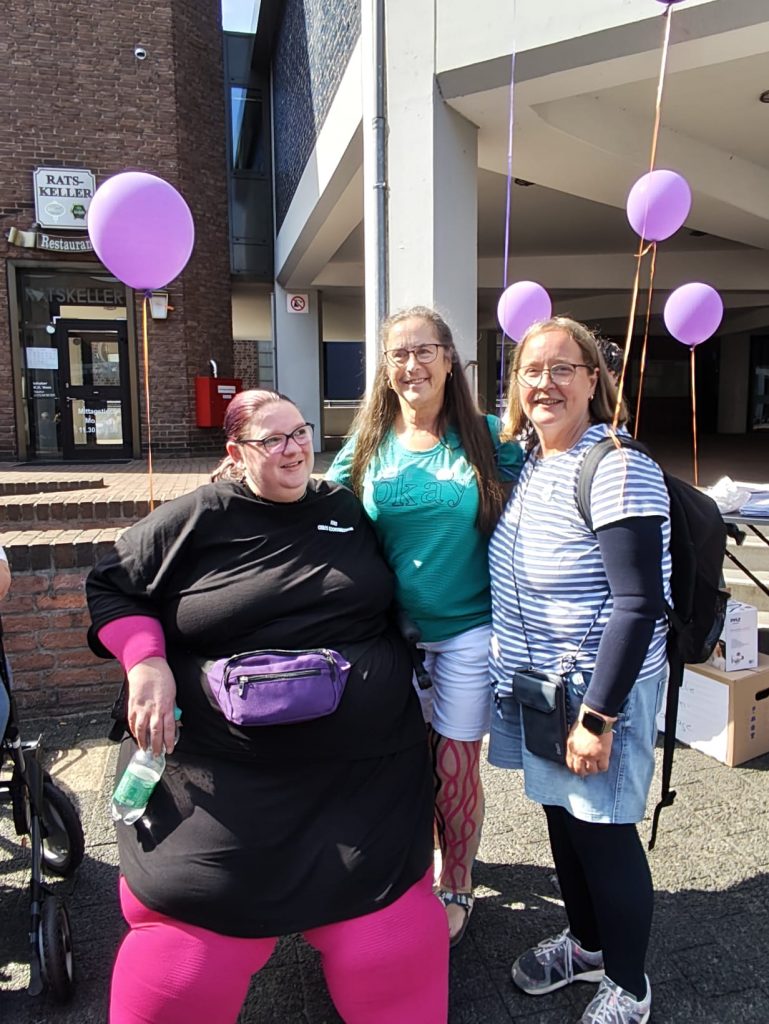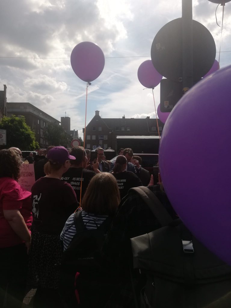 Um 12:30 Uhr sind wir gesammelt runter, dort standen schon viele Selbsthilfegruppen zur Unterstützung. Unterstützt hat uns auch die Polizei Wesel. Nachdem wir mit Ihnen kurz den Ablauf geklärt hatten, konnten wir Vollgas geben. Es wurden Luftballons und Trillerpfeifen verteilt. Wir alle hatten Plakate dabei. Und ganz viele Flyer und Unterschriften Listen.